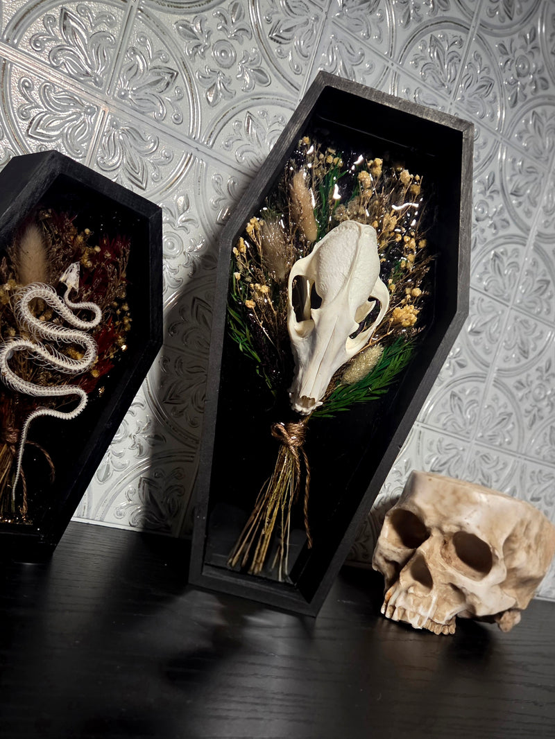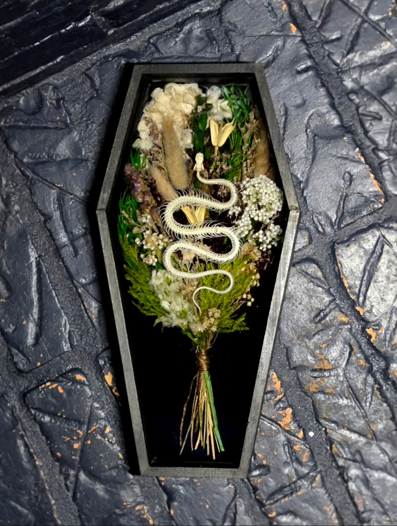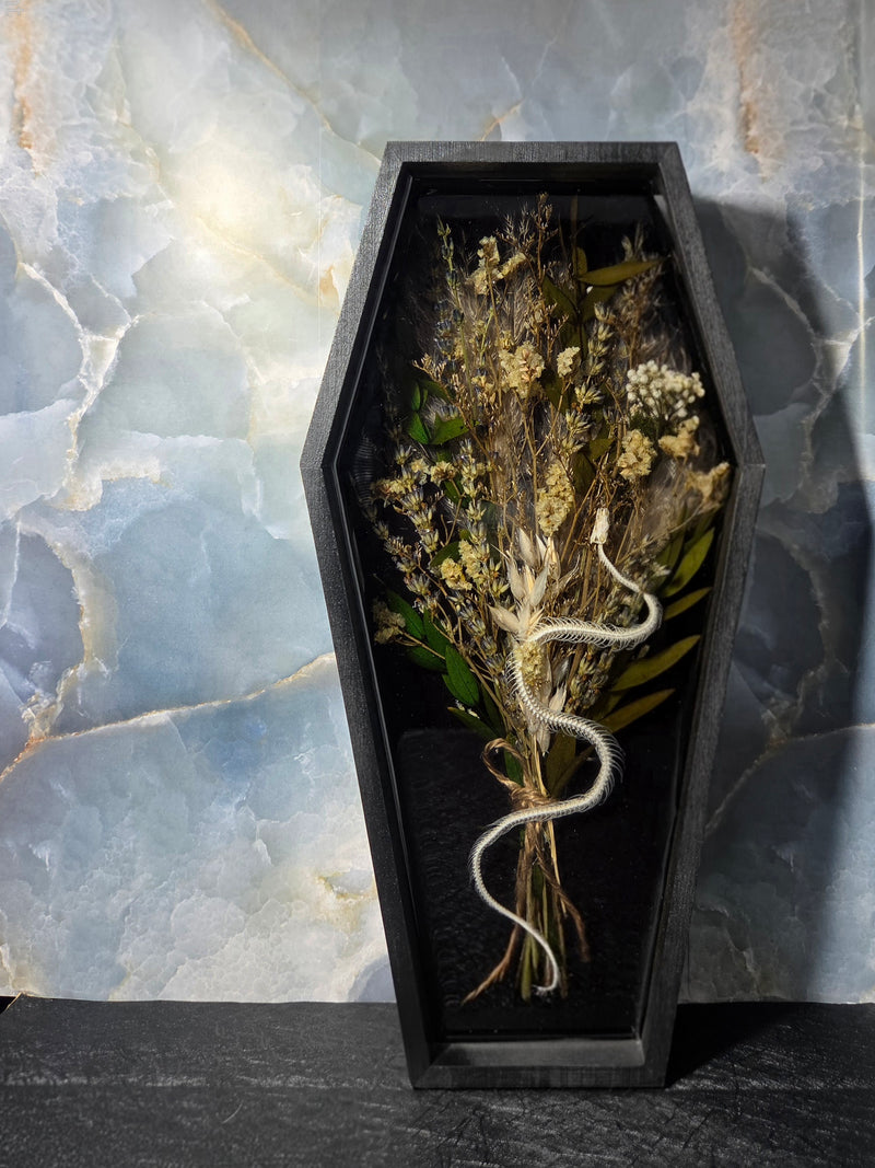 The pieces featured here have already found their permanent homes and are no longer available for purchase. This gallery serves as an archive of past curiosities, showcasing the diverse range of specimens and botanical arrangements created in the studio. While these specific treasures are sold, they can serve as inspiration for your own unique vision. If a particular style or specimen in this collection speaks to you, please head over to the Custom Orders page to discuss commissioning a bespoke piece tailored to your preferences.